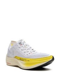 Zoomx Vaporfly Next% 2 sneakers The Nike ZoomX VaporFly NEXT% 2 now arrives in a white and yellow colourway. This sneaker has a sporty silhouette that indulges in a tonal arrangement across its mesh fabric upper while underfoot, a ZoomX-cushioning maintains a standard white aesthetic and the outsoles feature black tread at the forefoot. Highlights - White/yellow - Signature swoosh logo detail - Round toe - Front lace-up fastening - Branded insole - Chunky rubber sole - These styles are supplied by a premium sneaker marketplace. stocking only the most sought-after footwear, they source and curate some of the most hard to find sneakers from around the world. Imported Composition Sole: Rubber 100% Outer: Fabric 100% Lining: Fabric 100%