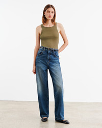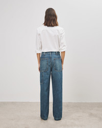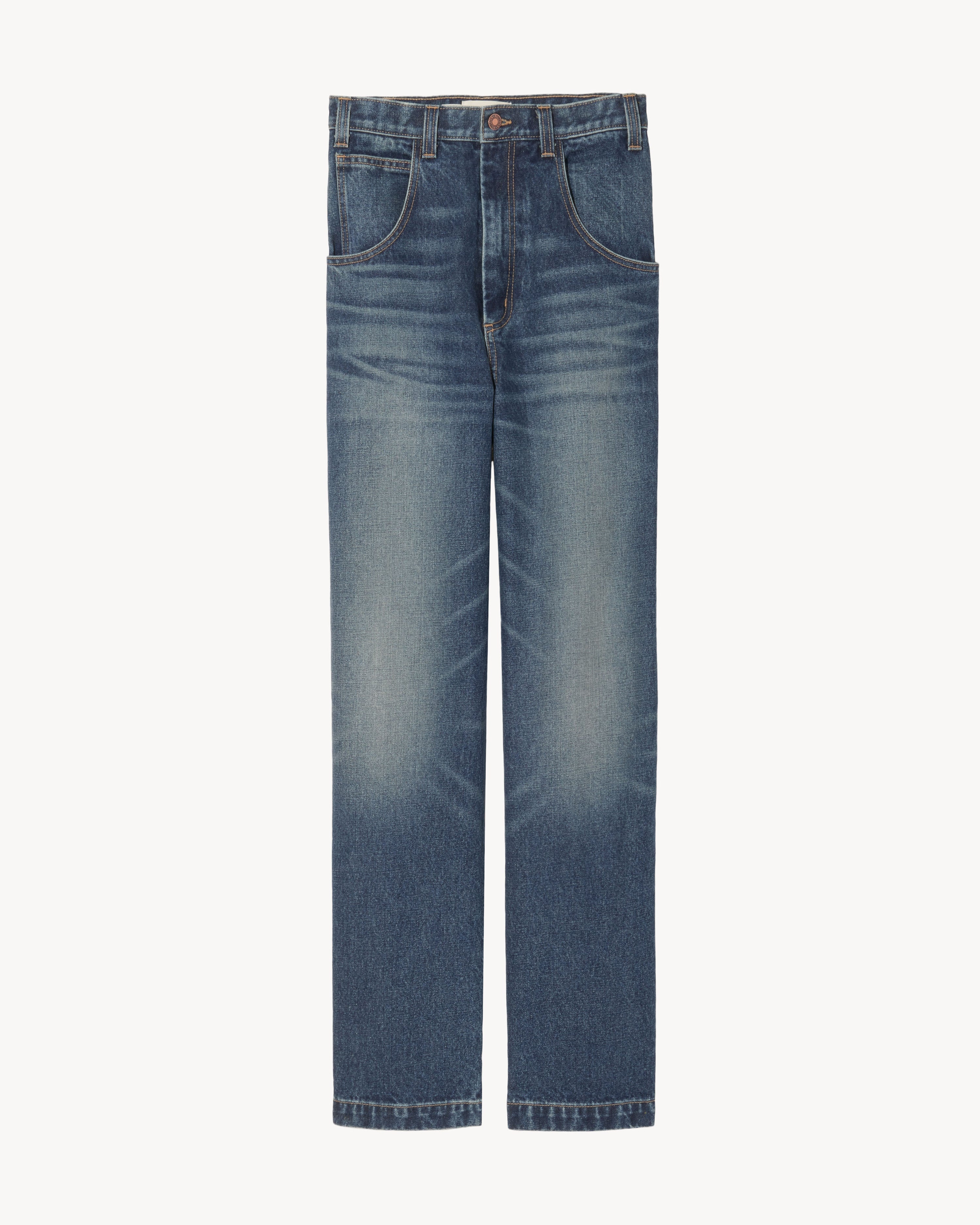 Mid-rise relaxed straight leg jean in non-stretch Japanese crosshatch denim. Zip fly. Shank closure. Front slash pockets. Coin pocket. Back carpenter pockets. Carpenter pockets at legs. Made in USA COMPOSITION & CARE 100% COTTON MACHINE WASH COLD TUMBLE DRY LOW LOW IRON