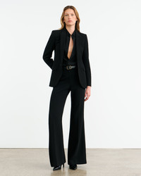 Single breasted slim blazer. Logo horn button closure. Chest welt pocket. Flap pockets. Full length sleeve. Fully constructed. Chest piece. Darts at front. Center back vent. Fully lined. - 69% Triacetate, 31% Polyester - Hand wash - Do not bleach - Do not tumble dry - Low iron - Dry clean