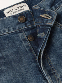 EDITORS'NOTES Nili Lotan's 'Terrell' jeans are made from faded denim and intentionally frayed at the floor-grazing cuffs. They have a comfortable high-rise waist and a straight legs. SIZE & FIT Model measurements: - Fits true to size, take your normal size - High-rise, cut for a straight-leg fit - Mid-weight, non-stretchy fabric - Size 26 jeans have an inside leg of 33.4"/ 85cm - Model is 177cm/ 5'10" and is wearing a size 26 - Bust: 79cm/ 31" - Waist: 61cm/ 24" - Hip: 85cm/ 33.5" DETAILS & CARE - Blue denim - Partially concealed button fastenings along front - 98% cotton, 2% polyurethane - Designer wash: Classic
