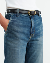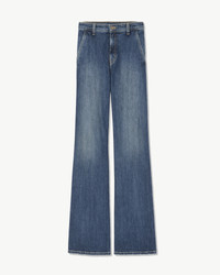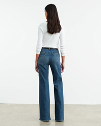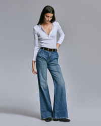 Cut from a stretch-denim in our classic wash, the Anna Jean features a high waisted, wide-leg fit in a trouser silhouette. Whisker detailing in the wash gives it an authentic vintage look. Features a zipper fly and two welt pockets at the back. Made in USA SIZE & FIT Model is 5'11 and wears a size 26. Model measurements are 32.5" bust, 26" waist, and 36" low hip. For exact measurements by size, view our size guide. COMPOSITION & CARE 98% COTTON, 2% POLYURETHANE, MADE IN AMERICA. MACHINE WASH COLD TUMBLE DRY LOW COOL IRON DO NOT BLEACH DO NOT DRY CLEAN