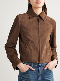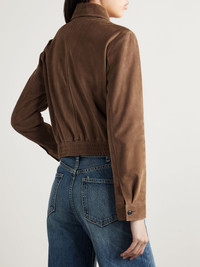 Nili Lotan's classic 'Beauvais' jacket will never go out of style. It's cut for a cropped fit from soft suede and has a pointed collar and welt pockets at the front. Size & Fit - Fits true to size, take your normal size - Designed for a relaxed fit - Partially elasticated at the hem - Supple, non-stretchy suede - Model is 180cm/ 5’11” and is wearing a size Small Model measurements: - Bust: 79cm/ 31” - Waist: 61cm/ 24” - Hip: 89cm/ 35” Details & Care - Brown suede - Zip fastening through front - 100% suede (Lamb) - Specialist clean - Designer color: Caffe