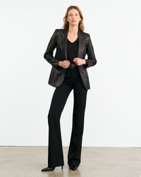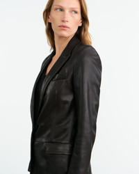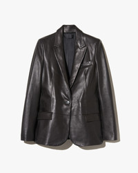 Slim fit blazer jacket in leather. Shoulder pads. Chest welt pocket. Pockets with flaps. SIde panels. Logo horn buttons. Center back seam detail. Interior pocket. Back vent. Fully lined. COMPOSITION & CARE 100% Lambskin Leather Professional leather care only Spot clean only