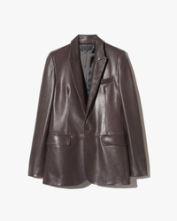 Slim fit blazer jacket in leather. Shoulder pads. Chest welt pocket. Pockets with flaps. SIde panels. Logo horn buttons. Center back seam detail. Interior pocket. Back vent. Fully lined. - 100% Lambskin Leather - Professional leather care only - Spot clean only