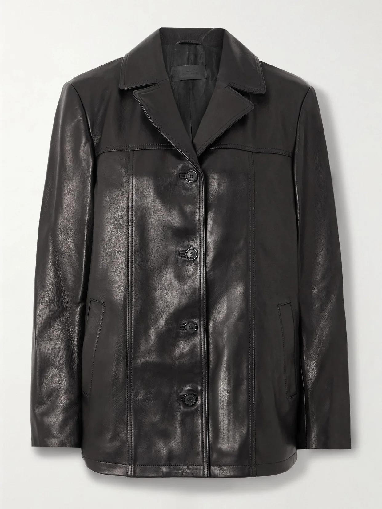 Nili Lotan's 'Brett' jacket is an easy way to make any outfit feel effortlessly cool. Cut from glossy leather, it has a straight, longline shape, notched lapels and tonal buttons.