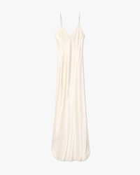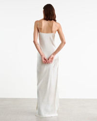 Lightweight silk charmeuse bias cut floor length gown. Adjustable skinny straps. Shirt tale detail at hem. Made in USA SIZE & FIT Model is 5'11 and wears a size S. For exact measurements by size, view our size guide. COMPOSITION & CARE 100% SILK, MADE IN USA DRY CLEAN ONLY LOW IRON