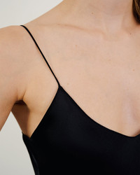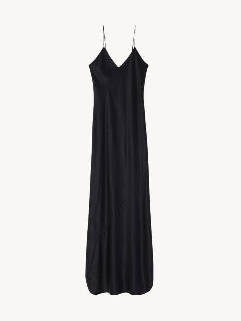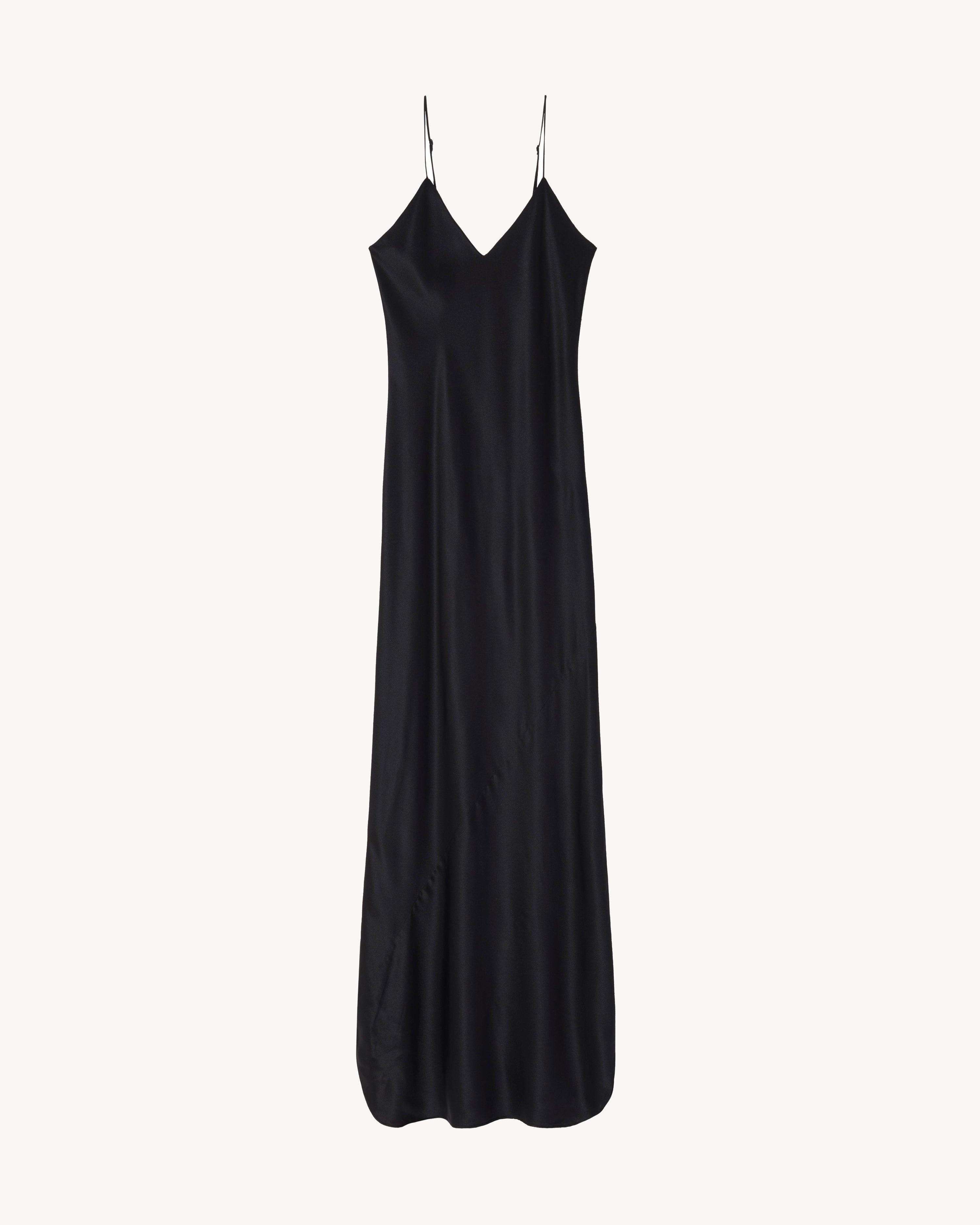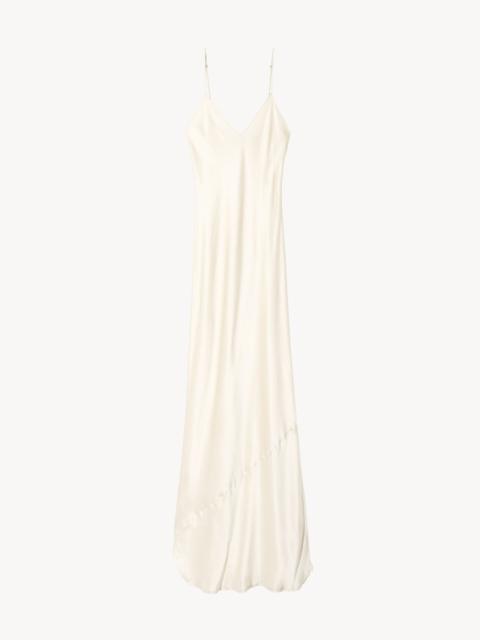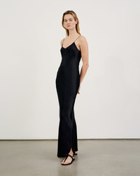 Lightweight silk charmeuse bias cut floor length gown. Adjustable skinny straps. Shirt tale detail at hem. Made in USA SIZE & FIT Model is 5'11 and wears a size S. For exact measurements by size, view our size guide. COMPOSITION & CARE 100% SILK, MADE IN USA DRY CLEAN ONLY LOW IRON
