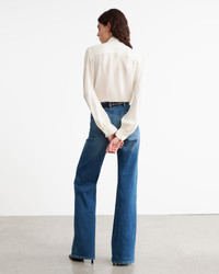 Relaxed bow tie blouse in silk. Center front placket. Troka buttons. Relaxed sleeve. Shirring at sleeve cap and cuff. Standard cuff with two buttons. Back yoke. Semi-sheer. Made in USA COMPOSITION & CARE 100% SILK DRY CLEAN ONLY LOW IRON