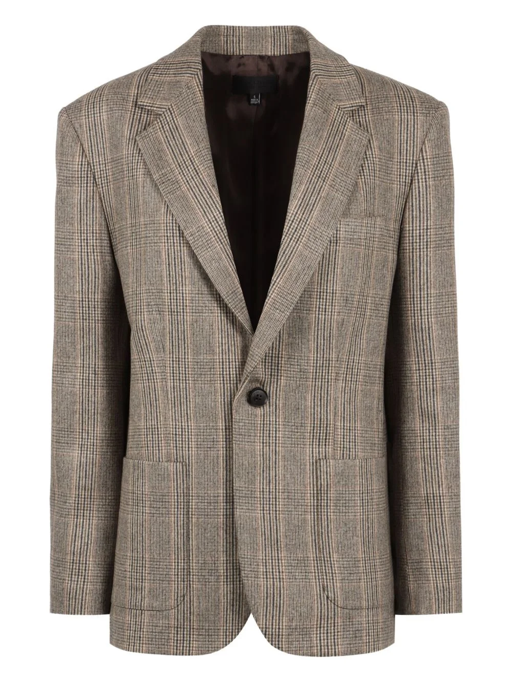 checked lapel blazer Highlights - Brown - Checked pattern - Lapel collar - Two flap pockets - Single-button fastening - Wool Made in United States Composition Wool 96%, Elastane 4% Washing instructions Read Manufacturer Guidelines