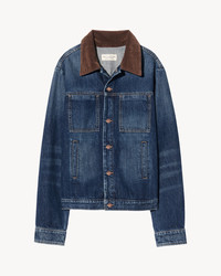 Relaxed jean jacket in non-stretch Japanese crosshatch denim. Corduroy collar. Logo shank closure. Denim seaming detail. Patch pockets. Welt pockets. Sleeves with shank detail. Shanks at back tabs. Unlined. Made in USA COMPOSITION & CARE 100% Cotton Machine wash cold Do not bleach Do not tumble dry Low iron