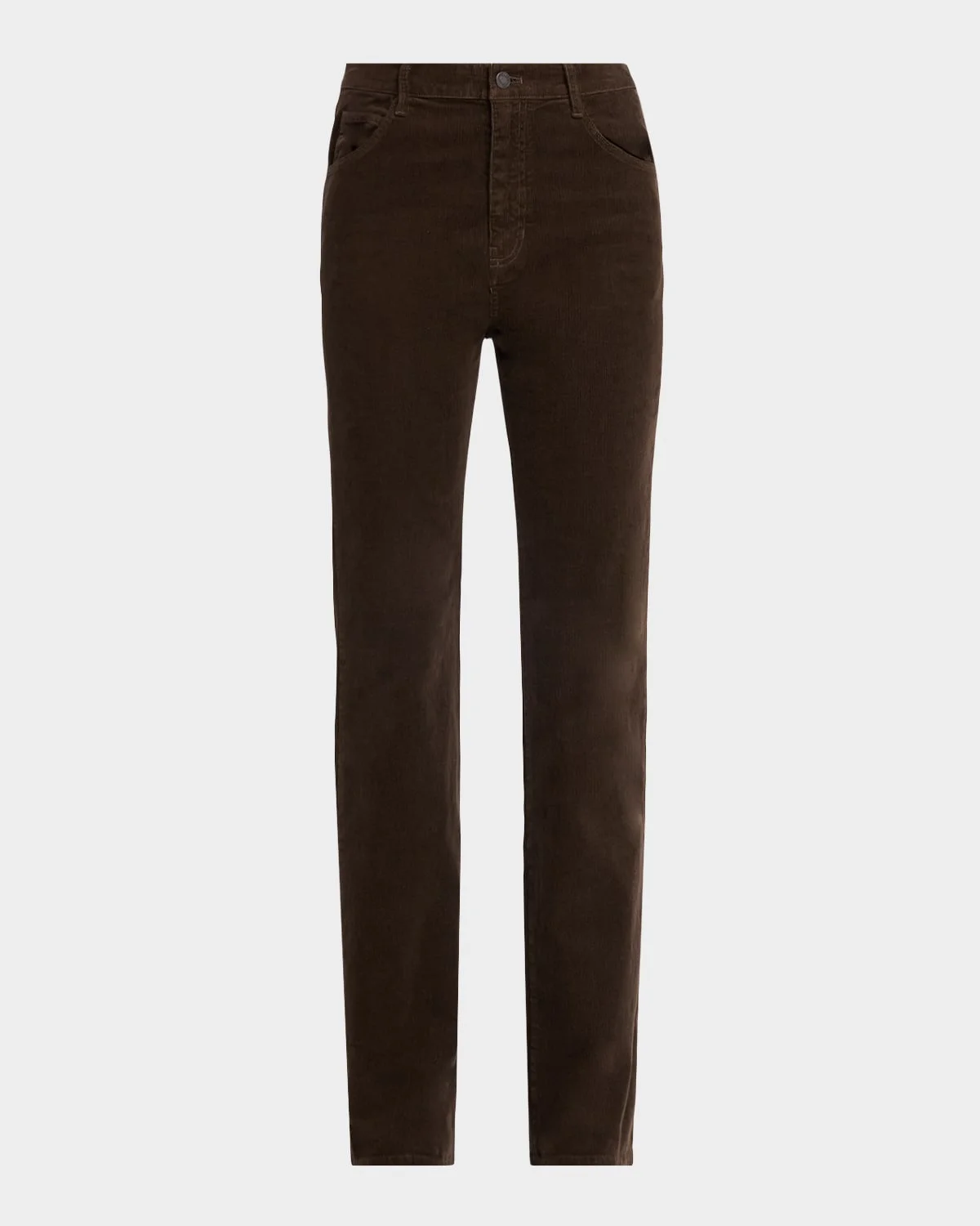 Nili Lotan's pants are expertly rendered in a plush cotton-blend corduroy, featuring a fine-ribbed texture that lends a soft, dimensional depth to the sophisticated, everyday silhouette High rise Five-pocket style Full length Slim fit through straight legs Button/zip fly; belt loops Cotton/polyester Made in USA SIZE & FITModel measurements: 5 & apos;10" tallModel is wearing a US size 4/Small