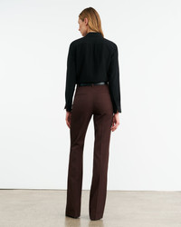 Flat front, high-rise straight leg trouser. Fitted through hips. Zip fly. Hidden hook-and-bar closure. Hidden stay button closure. Belt loops. Back welt pockets. Designed for a 35" inseam—tailor for a personalized fit. COMPOSITION & CARE 100% Virgin Wool Dry clean only