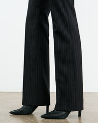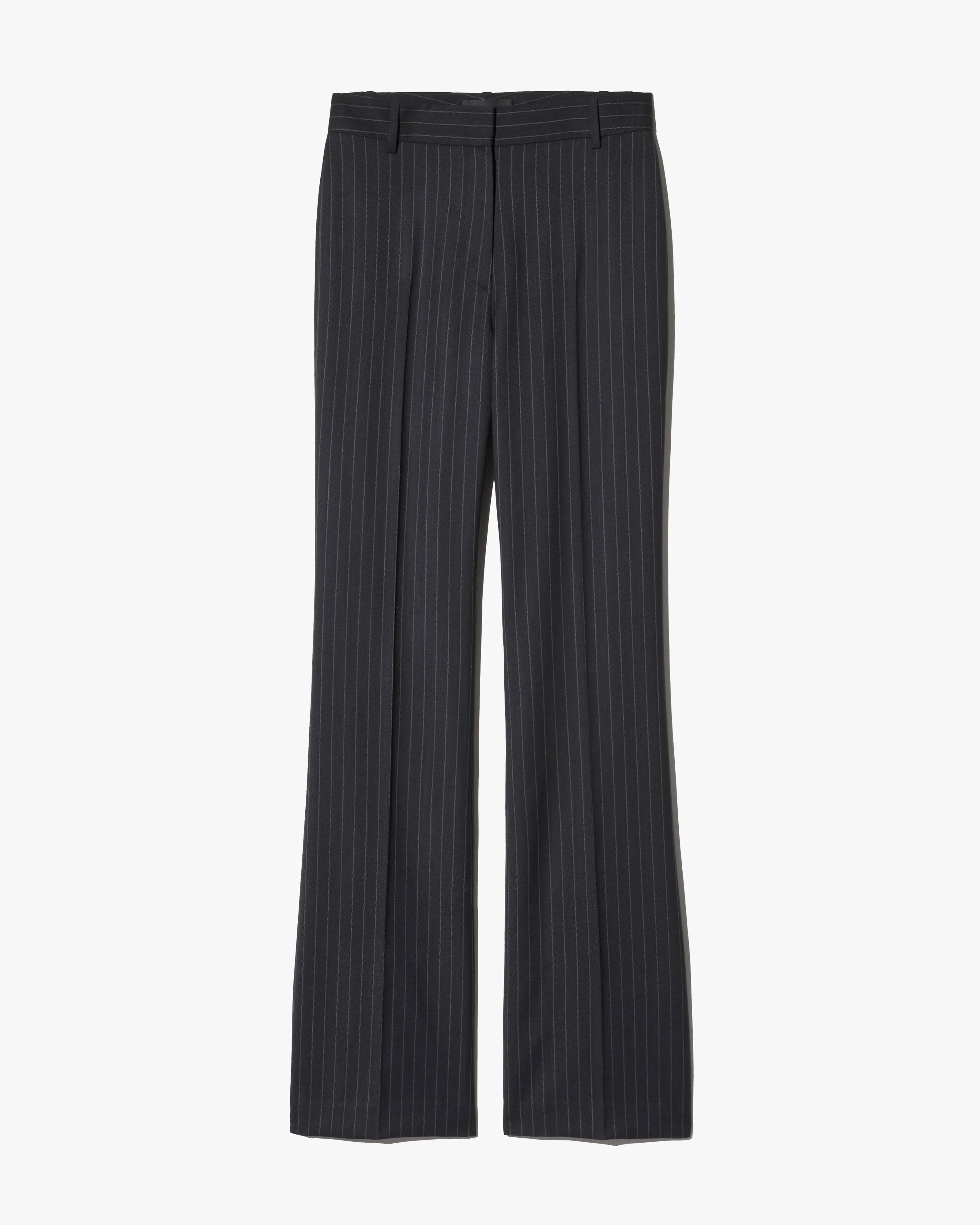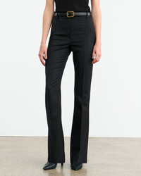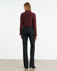 Flat front, high-rise straight leg trouser in Italian non-stretch wool. Fitted through hips. Zip fly. Hidden hook-and-bar closure. Hidden stay button closure. Belt loops. Back welt pockets. Designed for a 35" inseam. - Made in USA - 99% Virgin Wool, 1% Elastane - Dry clean only - Medium iron