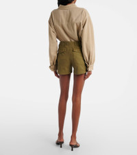 Invest in Nili Lotan's timeless wardrobe staples – where impeccable fit meets sophisticated designs. Crafted from cotton twill, these shorts feature a mid-rise waist and slim-leg fit, complemented by oversized patch pockets on the front and back. Product Details - Material: 98% cotton, 2% elastane - Care instructions: machine wash cold - Made in the USA - Designer color name: Military Green - Item color: green - Closure: zip, hook, and button fastening - Belt loops - Pockets: side slit pockets, back pockets - Item number: P01032913 Size & Fit - True to size - Non-stretchy fabric - Slim-leg - The model seen in the picture is 178cm-5'10" and wearing a size US 4