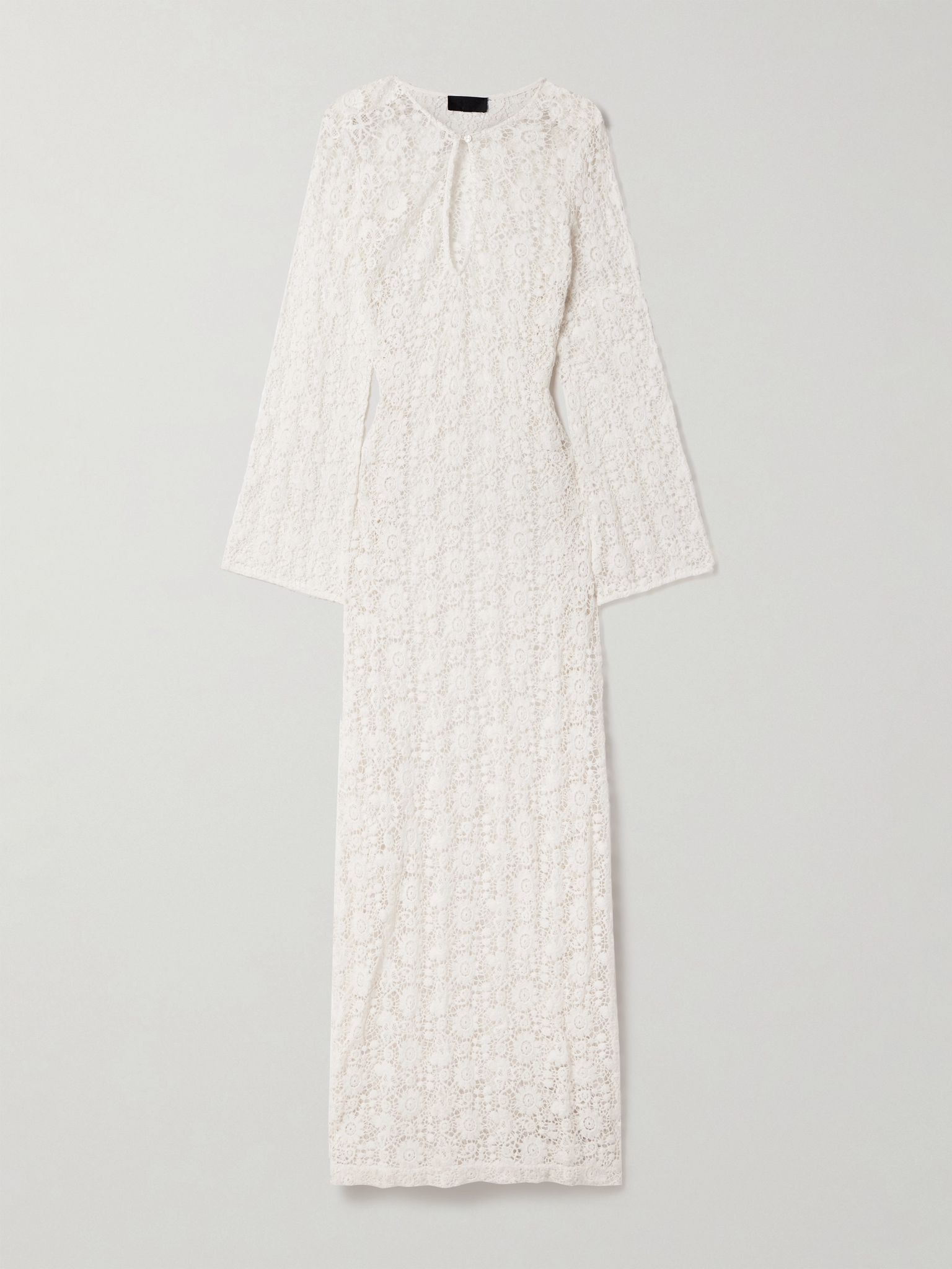 Nili Lotan's 'Della' maxi dress is crocheted from cotton in an open lace-inspired construction that'll keep you cool even in the midday heat. It's cut for a slightly loose silhouette with an adjustable keyhole neckline that fastens with a single button. Layer yours over a tonal bikini when heading to the beach and a slip dress in the evening. Size & Fit - Fits true to size, take your normal size - Designed for a slightly loose fit - Lightweight, non-stretchy fabric - Model is 175cm/ 5'9" and is wearing a size Small Details & Care - Ivory crocheted cotton - Button-fastening keyhole at front - 100% cotton - Machine wash - Mother-of-pearl: China