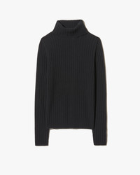 Long sleeve turtleneck pullover sweater in cashmere. Medium weight in rib stitch. Slim fit. Medium body length. Wrist length sleeve. 1x1 rib at cuff and hem. Folded over neck trim in rib stitch. Fashioning at back shoulder and sleeve. - 100% Cashmere - Dry clean only