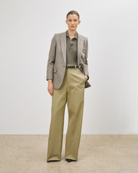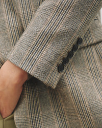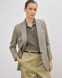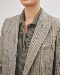Slightly oversized classic constructed blazer. Flap pockets. Chest welt pocket. Interior pocket. Button closure. Cuff buttons. Made in USA SIZE & FIT Model is 5'11 with 32.5" bust, 25.5" waist, and 35" low hip. Model wears size 4. For exact measurements by size, view our size guide. COMPOSITION & CARE 90%WOOL 8%CASHMERE 2%ELASTANE, MADE IN USA DRY CLEAN ONLY