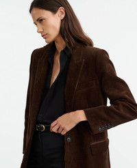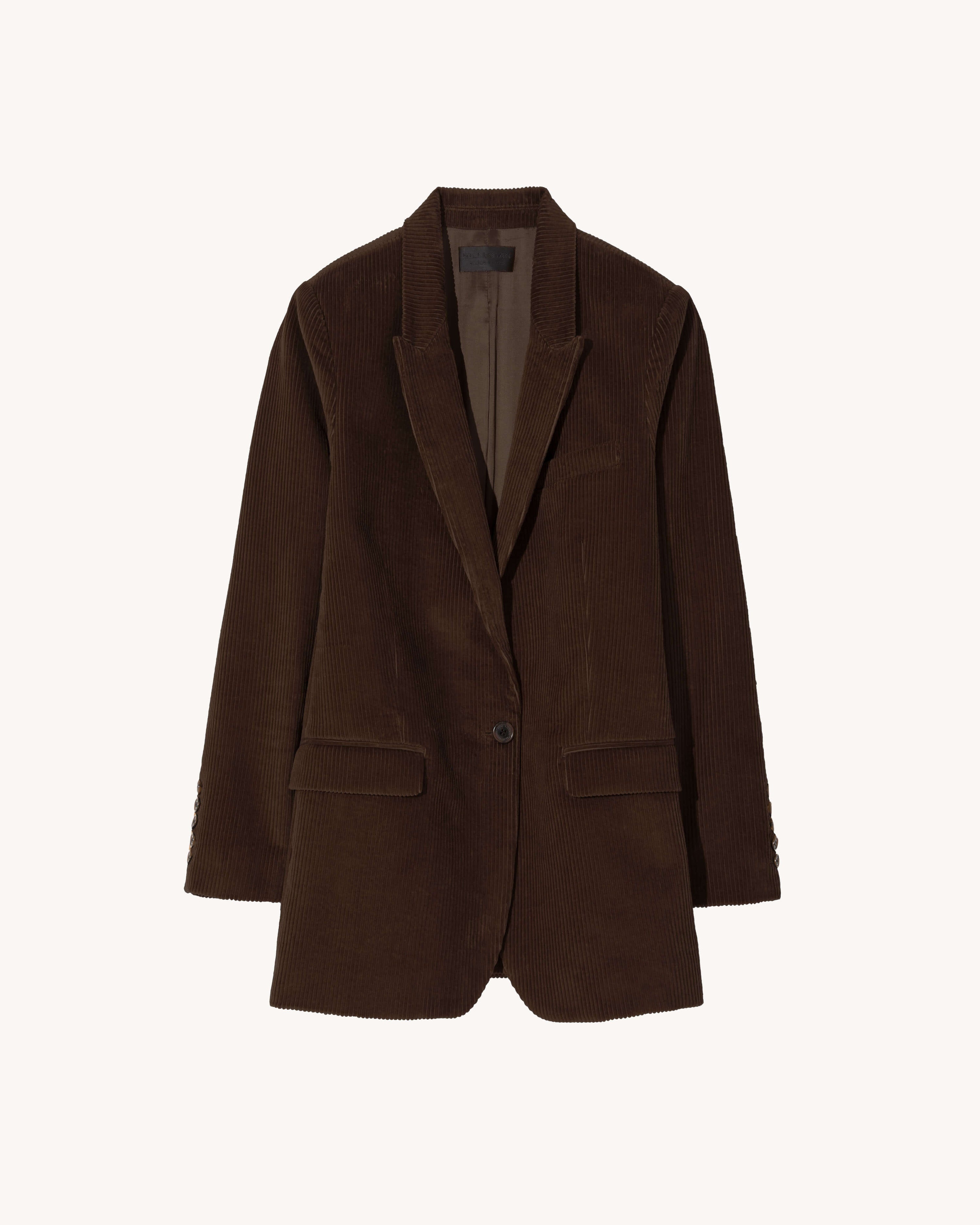 Slightly oversized classic constructed blazer. Flap pockets. Chest welt pocket. Interior pocket. Logo horn buttons. Front button closure. Cuff buttons. Made in USA COMPOSITION & CARE 100% COTTON DRY CLEAN ONLY LOW IRON