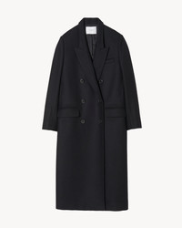 Oversized double-breasted coat in felted wool. Long, falls to mid-calf. Structured shoulder with shoulder pads. Peak lapels. Chest welt pocket and welt pockets. Six tonal buttons fasten on either side. Fully lined. Made in USA SIZE & FIT Model is 5'11 and wears a size S. For exact measurements by size, view our size guide. COMPOSITION & CARE 85% VIRGIN WOOL, 15% POLYAMIDE, MADE IN USA OF IMPORTED FABRIC DRY CLEAN ONLY LOW IRON