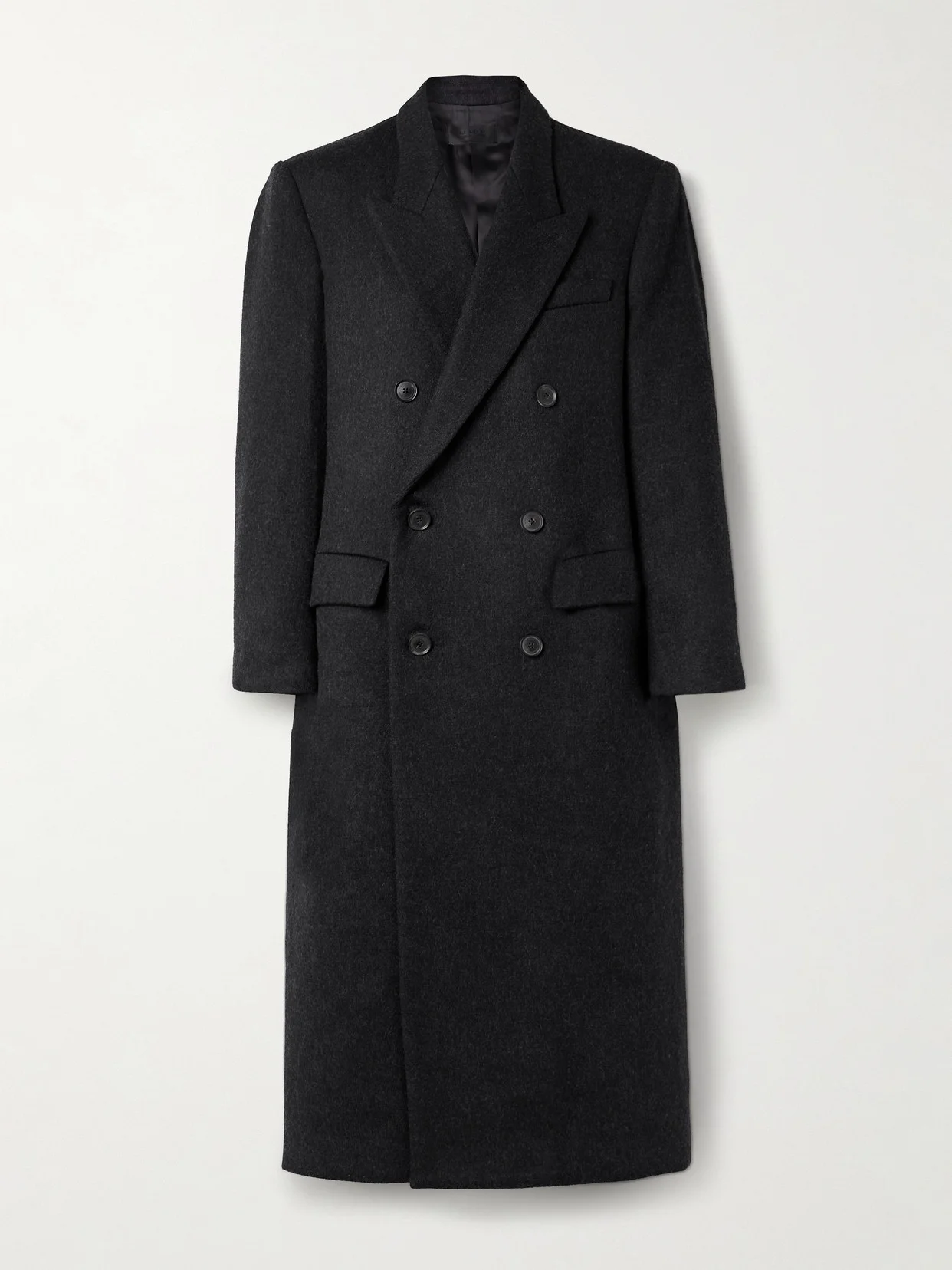 It was a vintage coat from the '70s that sparked inspiration for Nili Lotan's 'Edmont' style - the designer created it upon realizing she didn't have one like it in her personal wardrobe. Tailored from charcoal wool-blend, it has a sleek double-breasted profile with lightly padded shoulders and peak lapels.