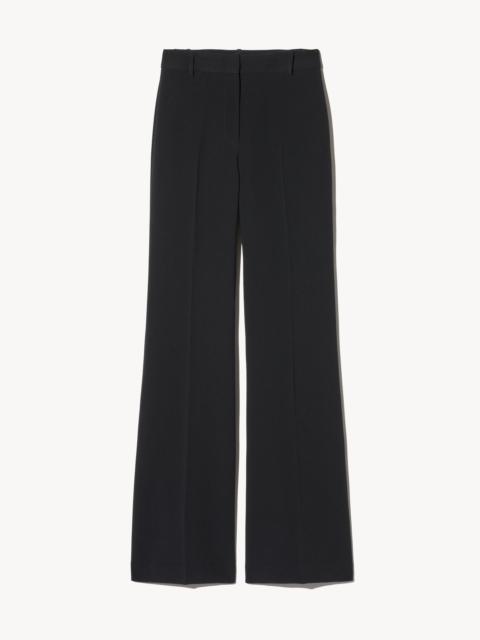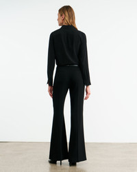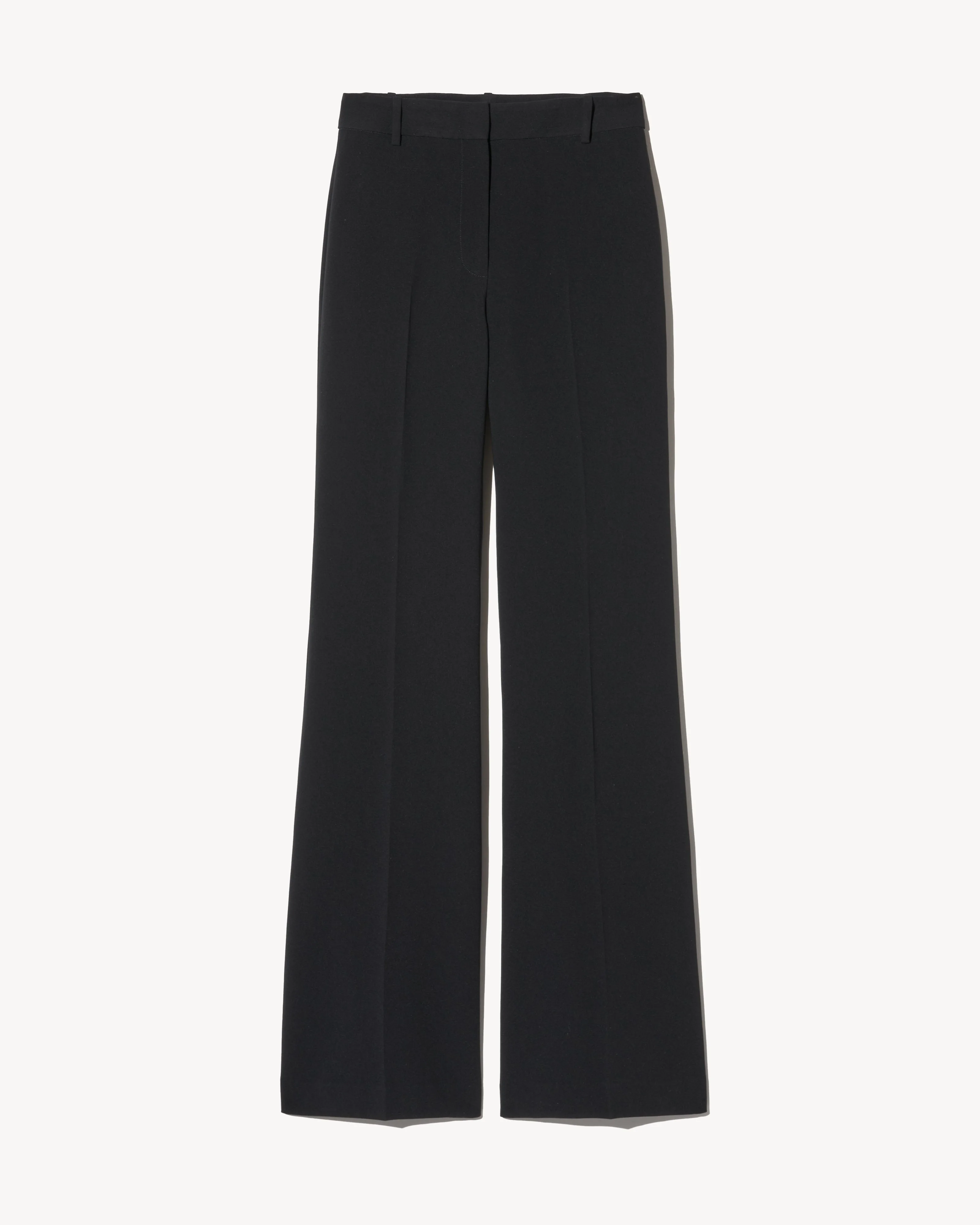 Flat front, high-rise flare leg trouser. Fitted through hips. Zip fly. Hidden hook-and-bar closure. Hidden stay button closure. Belt loops. Back welt pockets. Designed for a 35" inseam—tailor for a personalized fit. COMPOSITION & CARE 69% Triacetate, 31% Polyester Hand wash Do not bleach Do not tumble dry Low iron Dry clean