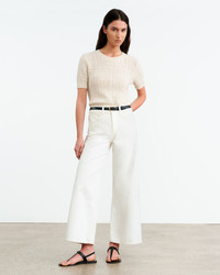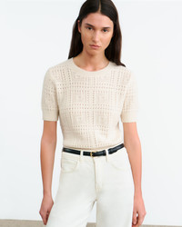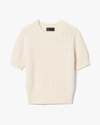Medium weight short sleeve sweater in open knit cashmere. Rib trim at neck, sleeve and hem. COMPOSITION & CARE 100% Cashmere Dry clean recommended