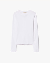 Slim ribbed long sleeve tee in American cotton. Baby rib. Cover stitch at hem and sleeve. Made in USA COMPOSITION & CARE 100% COTTON MACHINE WASH COLD DO NOT BLEACH TUMBLE DRY LOW LOW IRON DRY CLEAN