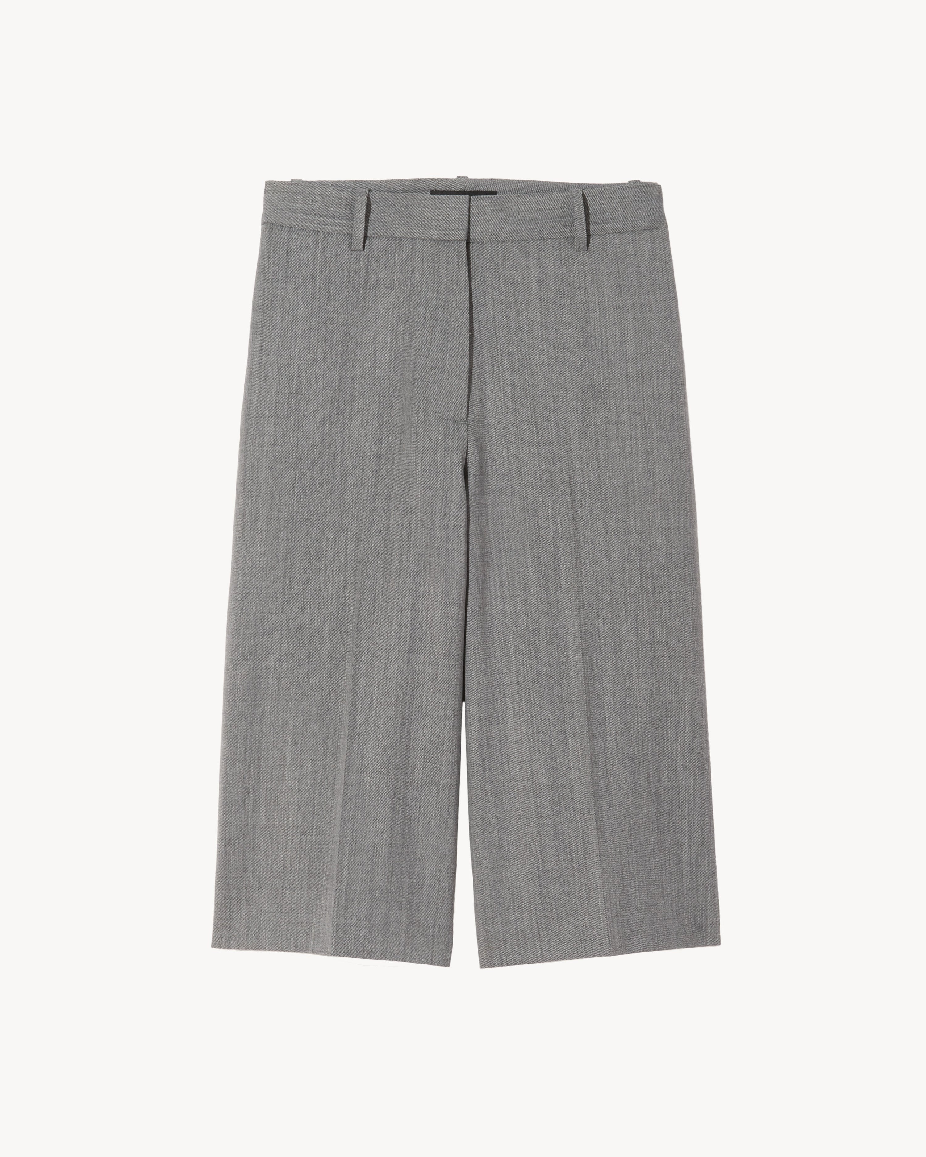 Relaxed Bermuda short in a stretch wool blend. Mid-rise flat front with easy wide legs that fall to the knees. Zip fly and button front closure. Side seam pockets and back welt pocket. Note: The fit is very relaxed. If you’d like this short to sit higher at the waist, order a size down. Made in USA COMPOSITION & CARE 53% POLYESTER, 43% VIRGIN WOOL, 4% ELASTANE DRY CLEAN RECOMMENDED LOW IRON