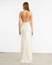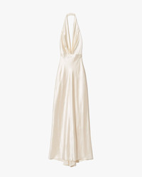 Floor length halterneck gown in heavy silk charmeuse. Double layer. Waistband with darts. Zip closure. Made in USA COMPOSITION & CARE 100% Silk Dry clean only Low iron