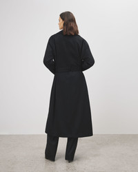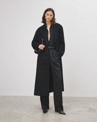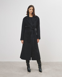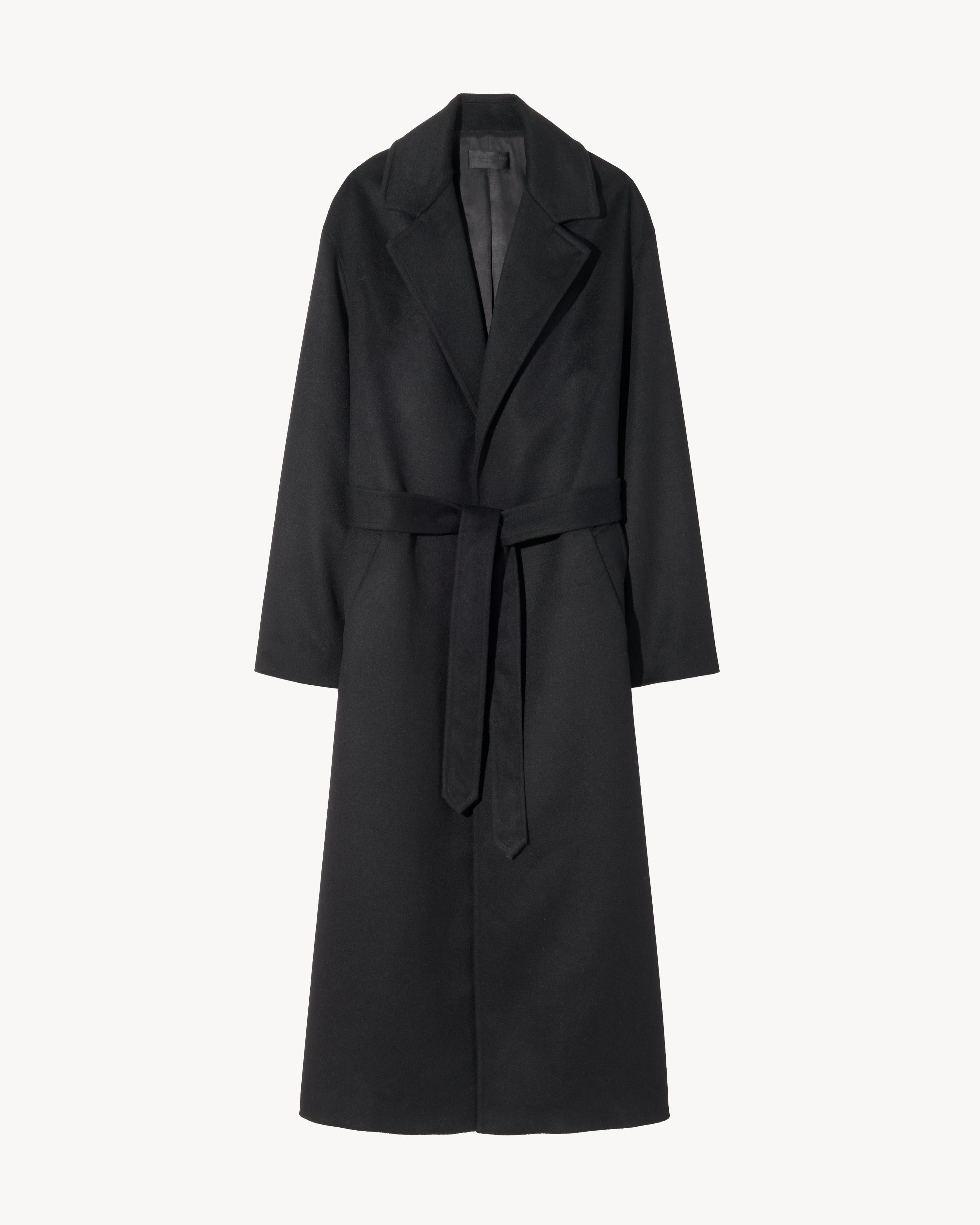 Relaxed-fit wrap coat in luxe wool-cashmere blend. Long, falls to mid-calf. Easy dropped shoulders. Notch lapels. Self-belt tie closure (no buttons), Back belt loop. Side seam pockets. Fully lined. Made in USA SIZE & FIT Model wears size S. For exact measurements by size, view our size guide. COMPOSITION & CARE 90% VIRGIN WOOL, 10% CASHMERE, MADE IN USA OF IMPORTED FABRIC DRY CLEAN ONLY LOW IRON
