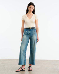 Lightweight fine gauge short sleeve ribbed henley tee sweater in Italian silk. Self start hem and sleeve. Fully fashioned along arm hole and shoulder. Single layer trim at neck. Button closure. COMPOSITION & CARE 100% SILK Dry clean recommended