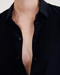 Classic long sleeve collared button up shirt. Straight slim body. Back yoke. Placket details. Made in USA SIZE & FIT Model wears size S. For exact measurements by size, view our size guide. COMPOSITION & CARE 100% SILK, MADE IN USA OF IMPORTED MATERIAL DRY CLEAN ONLY LOW IRON