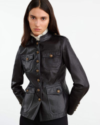 Slim fitted utilitarian jacket in leather. Signature crest buttons in antique brass. Epaulettes. Chest patch pockets with flaps. Patch pockets with flaps. Buttons at front, epaulettes and cuff. Fully lined. COMPOSITION & CARE 100% CALFSKIN SPOT CLEAN ONLY PROFESSIONAL LEATHER CARE ONLY