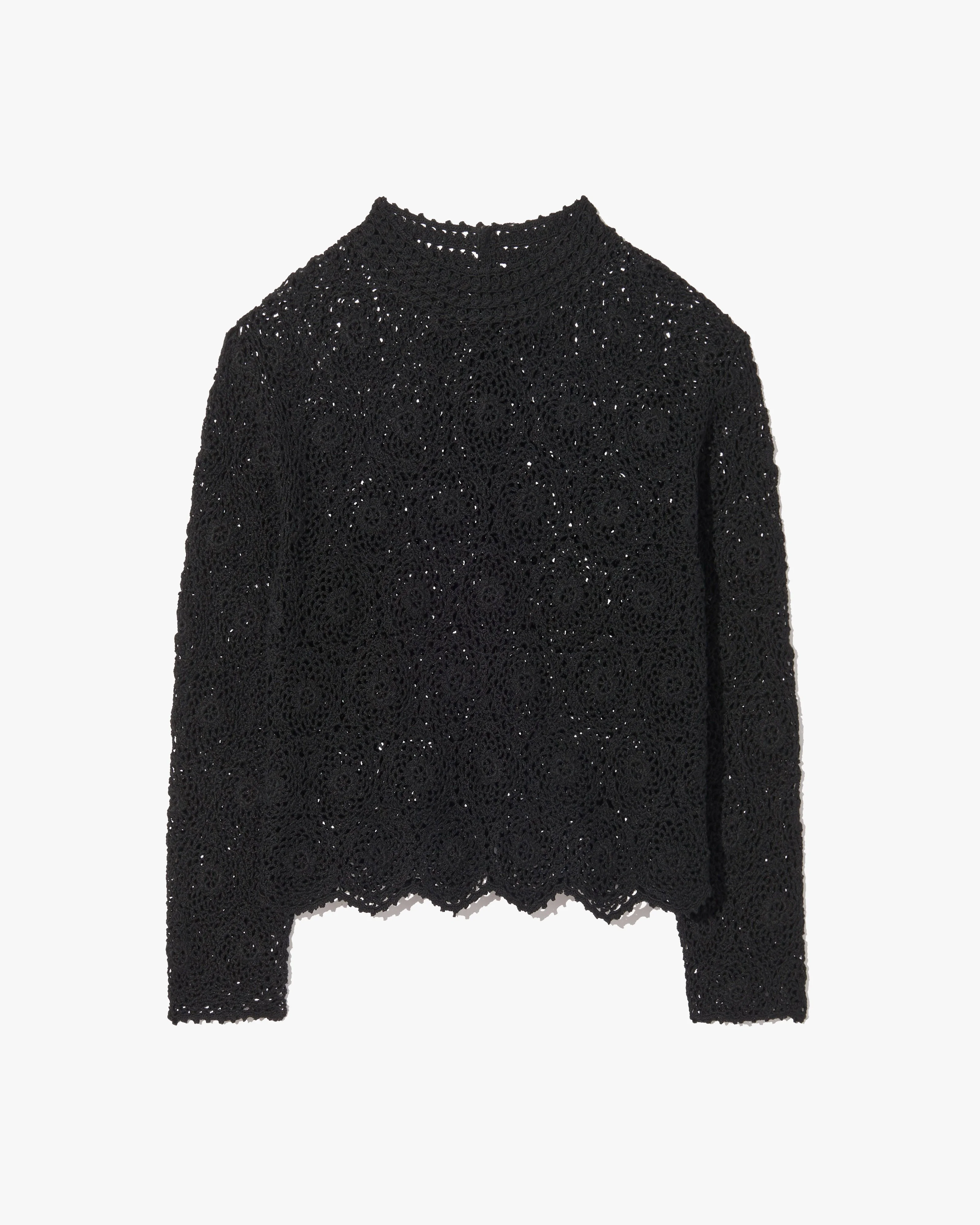 Button up top in Peruvian cotton. Custom circular floral crochet. Completed by hand. Mock neck. Scallop detail. Bauble detail at hem. Buttons down the back. COMPOSITION & CARE 100% Cotton Dry clean recommended