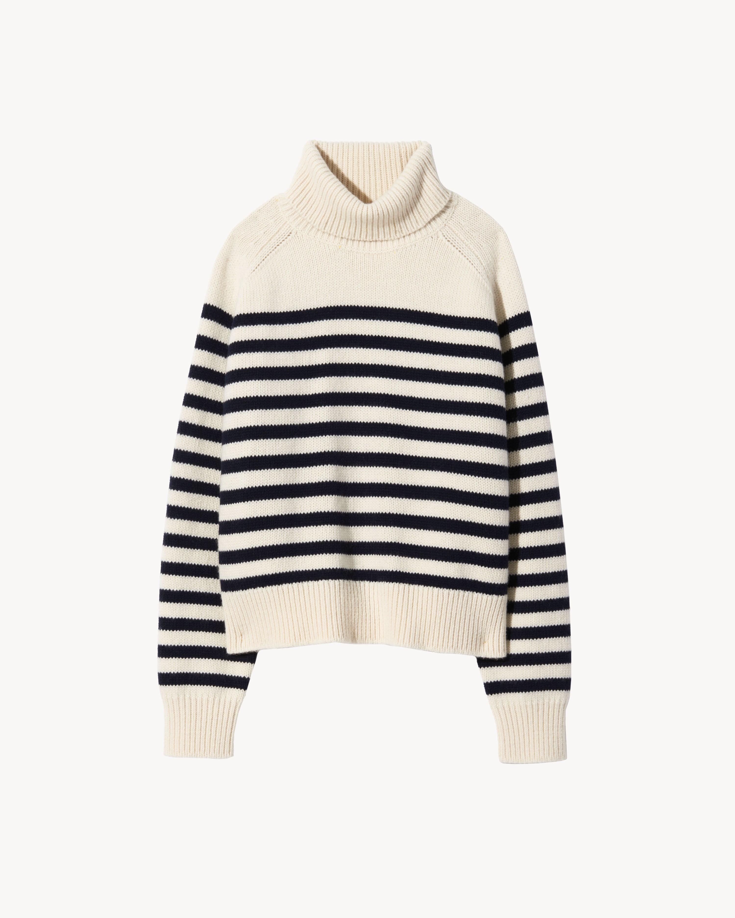 Oversized heavyweight foldover funnel neck weater. Long raglan sleeve. Fully fashioned along front and neck. Ribbing along hem. SIZE & FIT Model is 5'11 with 32.5" bust, 25.5" waist, and 35" low hip. Model wears size S. Size S measures approximately 22" front body length, 25 1/4" chest width, 27" bottom opening width. COMPOSITION & CARE 70% MERINO WOOL 30% CASHMERE DRY CLEAN RECOMMENDED