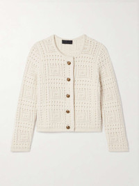 EDITORS'NOTES Chic and timeless, Nili Lotan's 'Harry' cardigan is one you'll have in your wardrobe for years to come. Pointelle-knitted from cashmere, it has a boxy shape and fastens with logo-crested buttons. SIZE & FIT Model measurements: - Fits true to size, take your normal size - Designed for a slightly loose fit - Mid-weight knit - Model is 180cm/ 5'11" and is wearing a size Small - Bust: 81cm/ 32” - Waist: 62cm/ 24.5” - Hip: 88cm/ 34.5” DETAILS & CARE - Ivory cashmere - Button fastenings through front - 100% cashmere - Dry clean