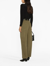 high-waist wide-leg jeans Highlights - Khaki - Cotton - Denim - Concealed fly and button fastening - Classic five pockets - High waist - Wide leg - Straight hem Made in United States Composition Cotton 100% SIZE & FIT Model measurements Height 5 ft 10 in(1.78 m) Bust/Chest 31.49 in(80 cm) Hips 35.03 in(89 cm) Waist 23.62 in(60 cm) FittingInformation Designed with a wide leg cut, these jeans allow for a close fit at the waist and offer a loose and roomy fit over the leg Sturdy and hard-wearing, this denim piece offers no stretch This piece fits true to size – take your usual size Washing instructions Machine Wash