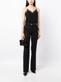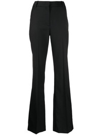 high-waist wool tailored-cut trousers Highlights - Black - Virgin wool blend - Stretch-design - High waist - Pressed crease - Belt loops - Concealed front fastening - Two side slit pockets - Two rear jetted pockets - Tailored cut Made in United States Composition Virgin Wool 99%, Elastane 1% SIZE & FIT Model measurements Height 5 ft 10 in(1.77 m) Bust/Chest 28.74 in(73 cm) Hips 35.82 in(91 cm) Waist 24.4 in(62 cm) FittingInformation Designed with a flared hem, these trousers allow for a close fit at the waist with a slim fit over the leg and widening towards the hem Made from a midweight stretch fabric, this piece offers elasticity and flexibility when worn This piece fits true to size – those with curvy hips may wish to take one size up