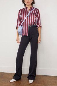 The Nili Lotan Corette Pant in Dark Navy is a slim tailored pant crafted in a lightweight Italian wool pinstripe. We love this pant with a crisp button down and heels. - Fits true to size, take your normal size - High waist - Slim, slightly flared legs with pressed creases - Zip fly and button front closure - Side seam pockets - Back welt pockets - 99% VIRGIN WOOL, 1% ELASTANE - Made in USA