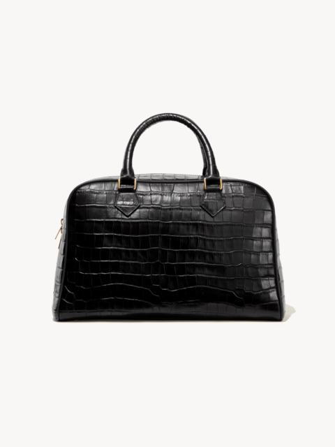 Top-handle bag in luxurious Italian suede. Italian suede lining. Semi-structured silhouette with a soft handfeel that collapses intentionally over time. Structured base. Removable interior pouch. Interior back wall zip pocket. No exterior logo. Interior features a debossed NILI LOTAN NEW YORK logo with “Made In” mark. Expertly crafted by Spanish artisans. Exterior and interior suedes are sourced from LWG-certified Italian tanneries that prioritize sustainability, energy conservation, and responsible water usage. All hardware is nickel-free, hand-plated in a custom gold finish developed exclusively for Nili Lotan. Dimensions (Inches) : 9” Height , 13.5” Length , 5” Depth , 4.75” Handle Drop - Italian Suede - Professional leather care only