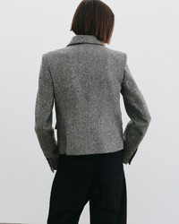 Slim fit collared jacket. Chest patch pockets with flaps. Patch pockets with flaps. Logo horn buttons. Buttons at center front and cuff. Fully lined. - 70% Virgin Wool, 30% Nylon - Dry clean - Low iron