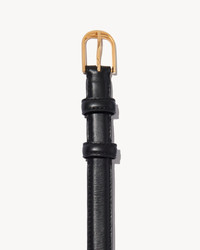 A narrow 3/4" belt inspired by Nili's personal favorite vintage belt, featuring a solid brass buckle with special plating. SIZE & FIT Measurements are in CM. Size is determined by measuring from center bar of buckle to the third hole. Total width of belt is 2cm. Size 75: 75cm to 3rd hole, total length is 90cm Total Length: 35" Size 80: 80cm to 3rd hole, total length is 95cm Total Length: 37" Size 85: 85cm to 3rd hole, total length is 100 cm Total Length: 39'' Size 90: 90cm to 3rd hole, total length is 105 cm Total Length: 41"