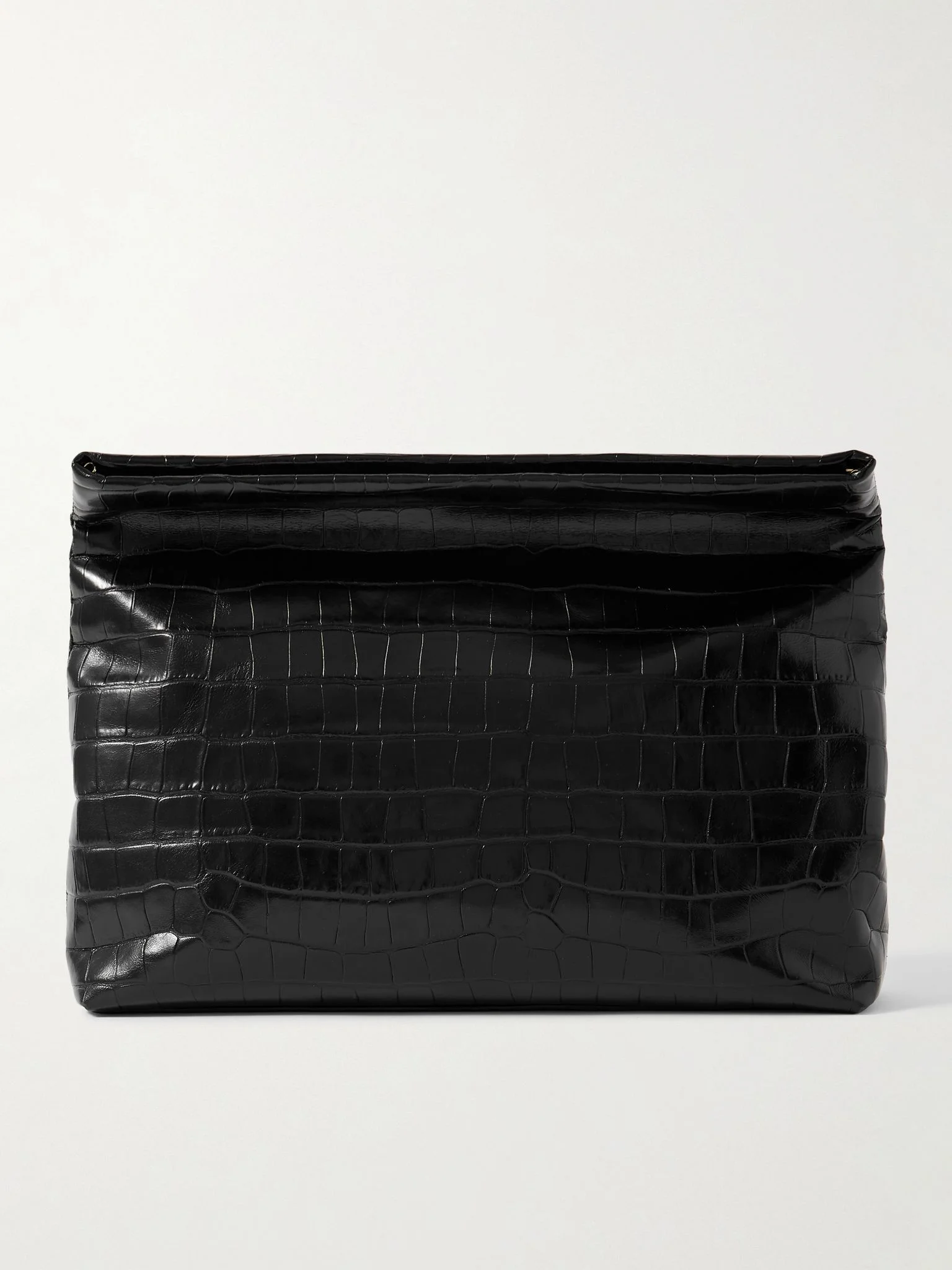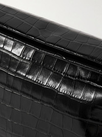 Nili Lotan's 'Jerry' clutch has a simple, streamlined shape that can be folded over at the top to fit a bit more comfortably under your arm. It's made from glossy croc-effect leather and has a suede-lined interior that'll fit your phone, wallet and a few cosmetics for touch-ups. Details & Care - Black croc-effect leather - Internal slip pocket - Suede lining - Hinge fastening at open top - Comes with dust bag