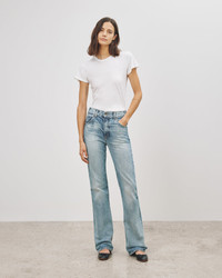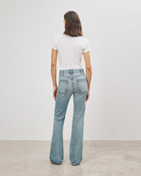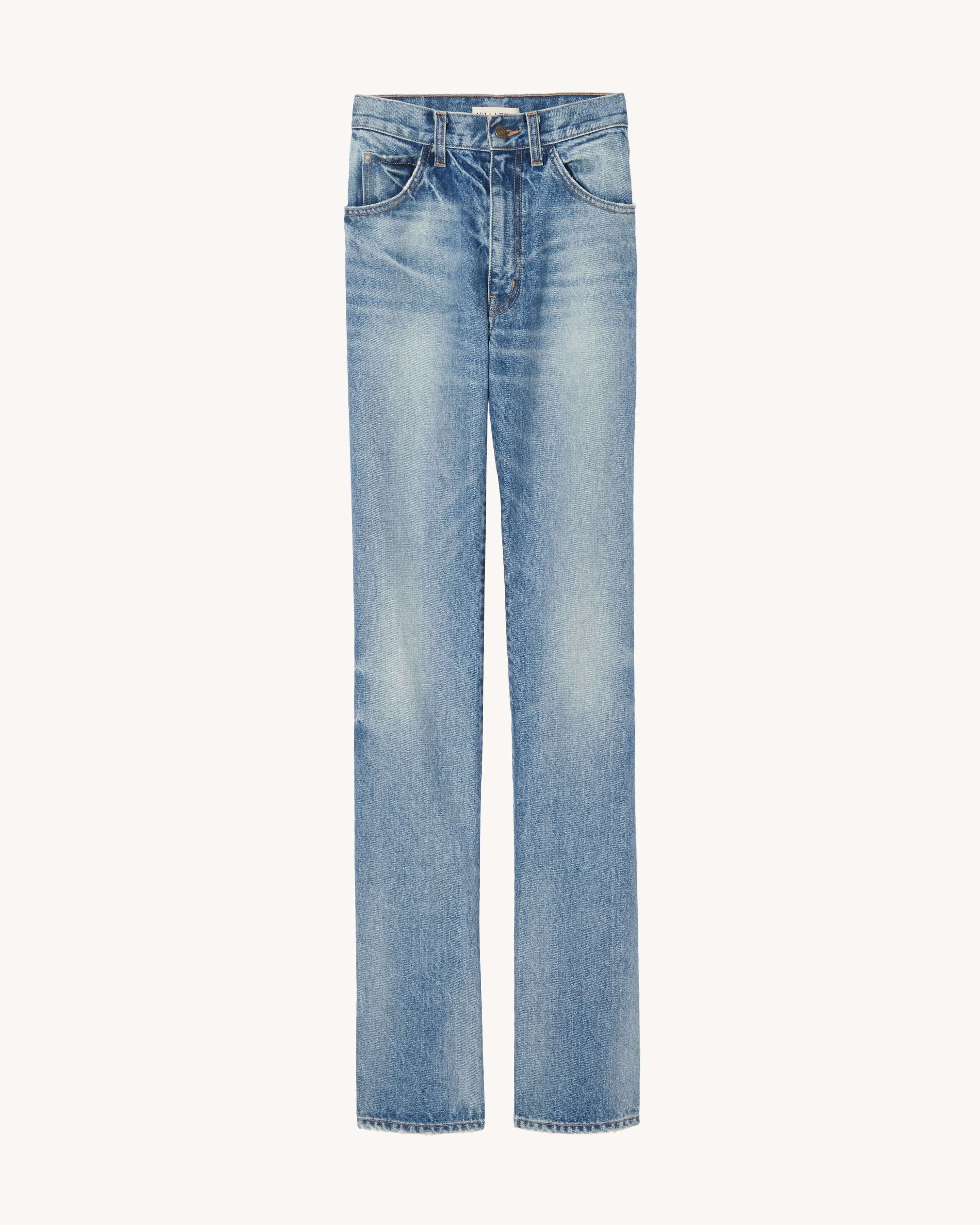 Non-stretch super high-waisted fitted straight leg jean. Made in USA SIZE & FIT Model is 5'11 and wears a size 27. For exact measurements by size, view our size guide. COMPOSITION & CARE 100% COTTON MACHINE WASH COLD TUMBLE DRY LOW LOW IRON