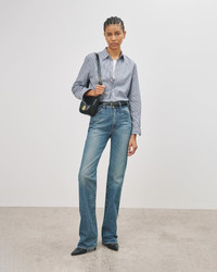 High-waisted, slim straight leg jean in non-stretch Japanese heavyweight crosshatch denim. Five pocket details. Zip fly. Shank closure. Belt loops. Designed for a longer inseam—tailor for a personalized fit. Markdown items are eligible for return within 7 days of receipt. Made in USA COMPOSITION & CARE 100% COTTON MACHINE WASH COLD TUMBLE DRY LOW LOW IRON