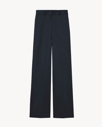 Flat front, super wide leg trouser. For further ease, it has a low crotch. Waist sits right above hip bone. Made in USA SIZE & FIT Model is 5'11 and wears a size 4. For exact measurements by size, view our size guide. COMPOSITION & CARE 100% COTTON, MADE IN USA DO NOT BLEACH DO NOT TUMBLE DRY LOW IRON DRY CLEAN