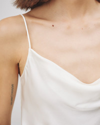 Slim cowl-neck camisole top in body-skimming bias-cut-silk charmeuse. Adjustable spaghetti straps. Unlined. Long enough to tuck. Made in USA SIZE & FIT Model wears size S. Size S measures approximately 19" body length, 34" chest circumference, 33 1/2" waist circumference. COMPOSITION & CARE 100% SILK, MADE IN USA OF IMPORTED FABRIC DRY CLEAN ONLY LOW IRON