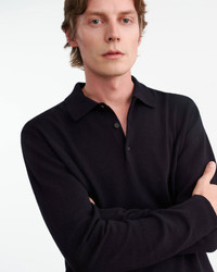 Lightweight relaxed long sleeve polo sweater in cashmere. Three button placket. Slightly dropped shoulder. Fashioning along arm hole, neck and shoulder. Rib trim at hem and cuff. Signature center back cable knit detail. COMPOSITION & CARE 100% CASHMERE DRY CLEAN RECOMMENDED