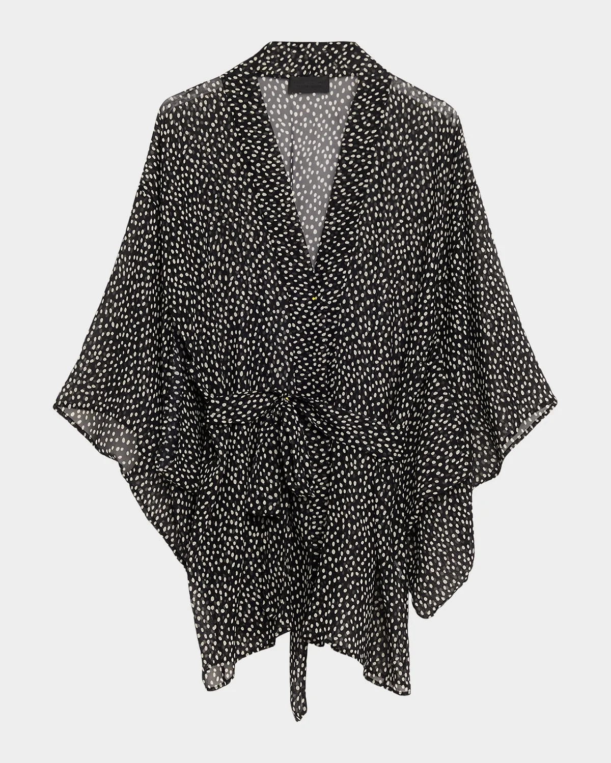Nili Lotan's "Kima" kimono is rendered in diaphanous silk, featuring a delicate speckled dot pattern that lends a rhythmic, textural depth to the fluid silhouette Open front 3/4 sleeves Self-tie sash belt with threaded loop closures Relaxed fit Silk Dry clean Made in USA SIZE & FITModel measurements: 5 & apos;10" tallModel is wearing a US size 4/Small