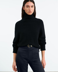 Relaxed pullover high neck sweater in cashmere. Raglan sleeve. Fashioning at sleeve. Rib detail at side seams. Rib variation trim at neck, sleeve and hem. Signature center back cable knit detail. COMPOSITION & CARE 100% Cashmere / Imported. DRY CLEAN RECOMMENDED